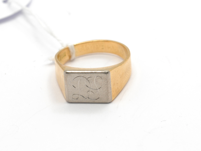 Ring, med gravyr skev skena Ø 18 3/4 18K 6,9g