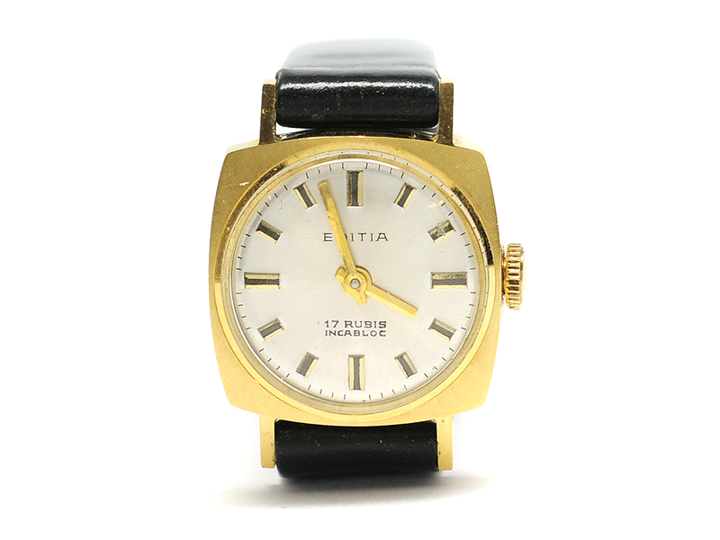 EDITA, damur, 20 mm, 18K guld, manuell, plexiglas, läderband, ca 1975.