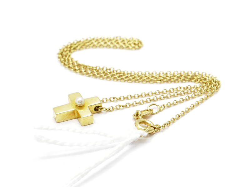 Halskedja, 18K Ankarlänk 39,5cm samt Hänge med pärla 2,9g