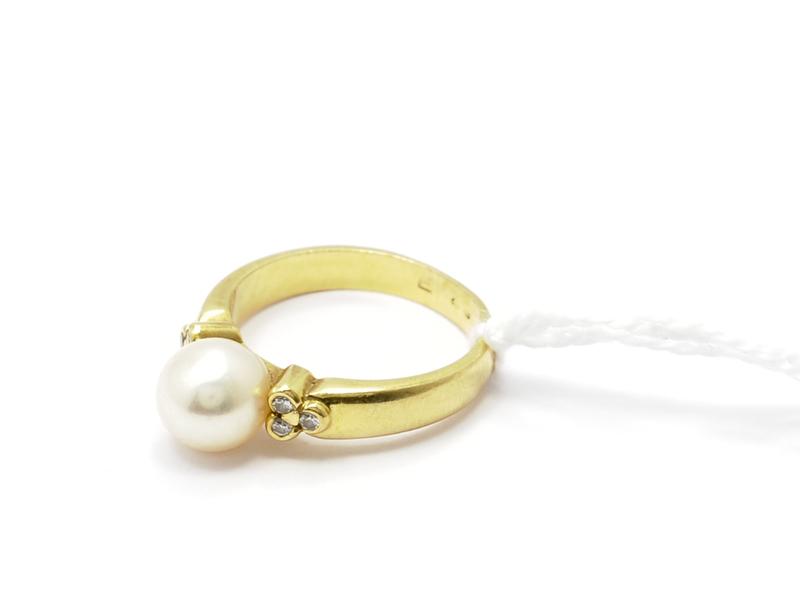 Ring, 18K med diamanter 6xca0,01ct samt pärla Ø17½ 6,0g