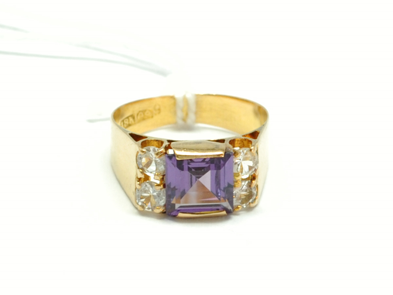 Stenring, 18K Ø15½ med lila och vita stenar, 2,8g