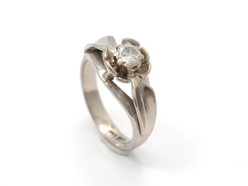 RING, 18K rodierat guld, briljant ca 0,25 ct, TW/P, stl 15,5 mm, vikt 4,9 g, Tore Pettterssons Guldsmide, Gävle.