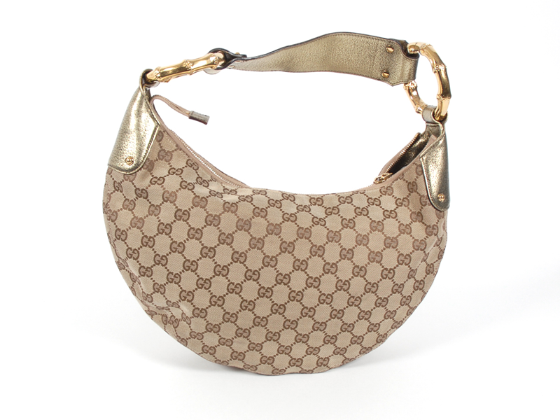 VÄSKA, GUCCI beige/brun gg tyg/brons färgat läder 32x22x6 cm