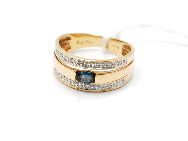 Ring, med blå sten och diamanter 22xca0,005ct Ø16¾ 18K 3,5g
