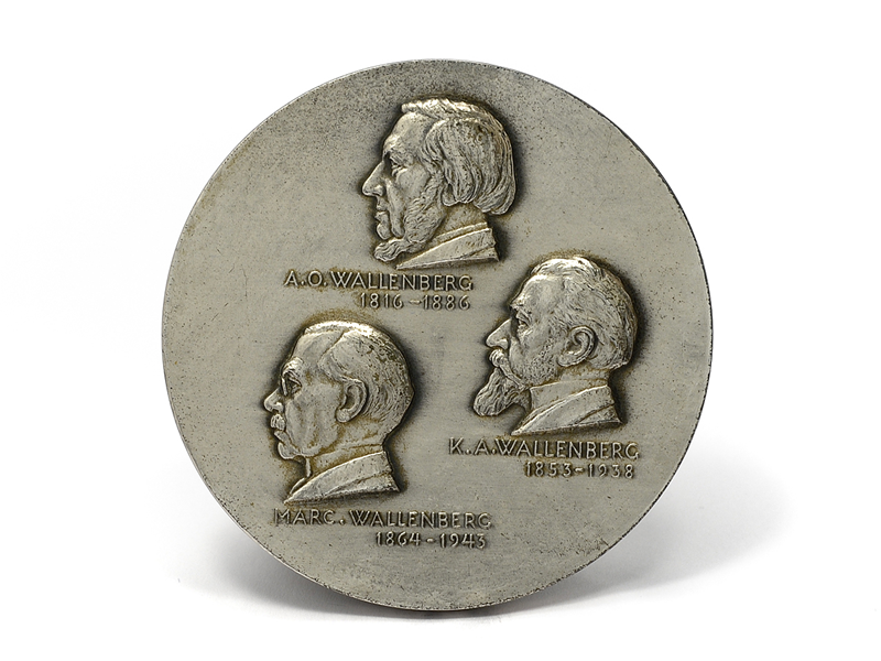 MINNE, silver, Wallenberg & SEB, 1965, diameter 64 mm, vikt 116,4 g, av Ivar J-son för Sporrong, etui.
