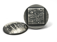 MINNE, silver, Leonardo Da Vinci, 3 delar, 1974, diameter 60 mm, vikt 402,0 g, av Kauko Räsänen för Sporrong.
