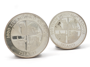 2 MYNT, silver, 500 och 1000 Kronur, Island, 874-1974, kvalité ca 0-01, proof, total vikt 50,1 g, etui.