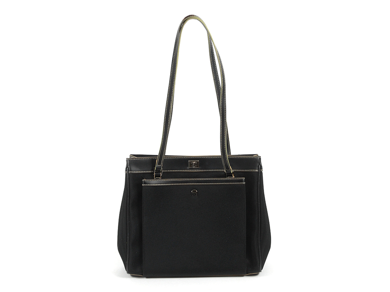 VÄSKA, ETIENNE AIGNER, svart tyg/läder, beige kantstickningar, 28x25x7 cm