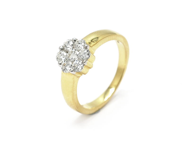 RING, 14K guld, 7 briljanter ca 0,76 ctv, ca TW/VS-SI, stl 17 mm, vikt 4,1 g.