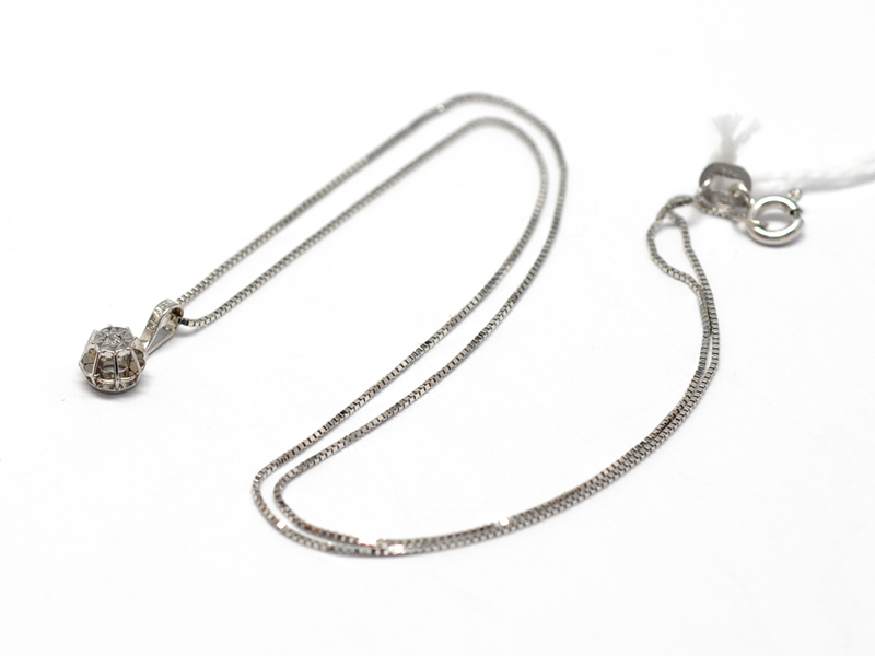 Halskedja, 18K vitguld Venezia 37cm med hänge vitguld med sten 1,6g