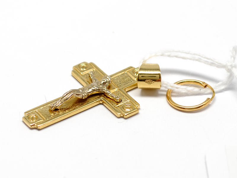 Hänge, 18K tvåfärgat Krusifix ett udda örhänge 18K 7g