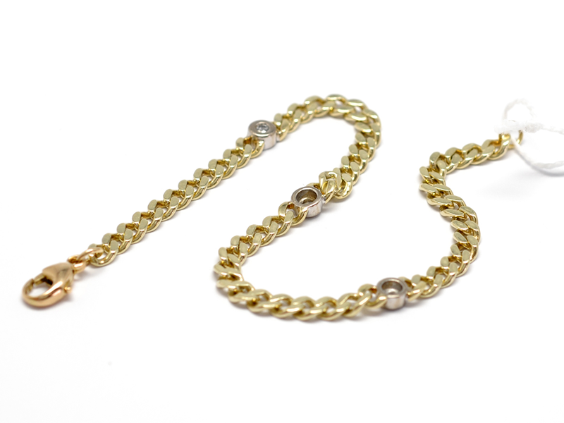 Armband, Pansar med diamanter 3xca.0,03ct 14K 20cm 10,8g
