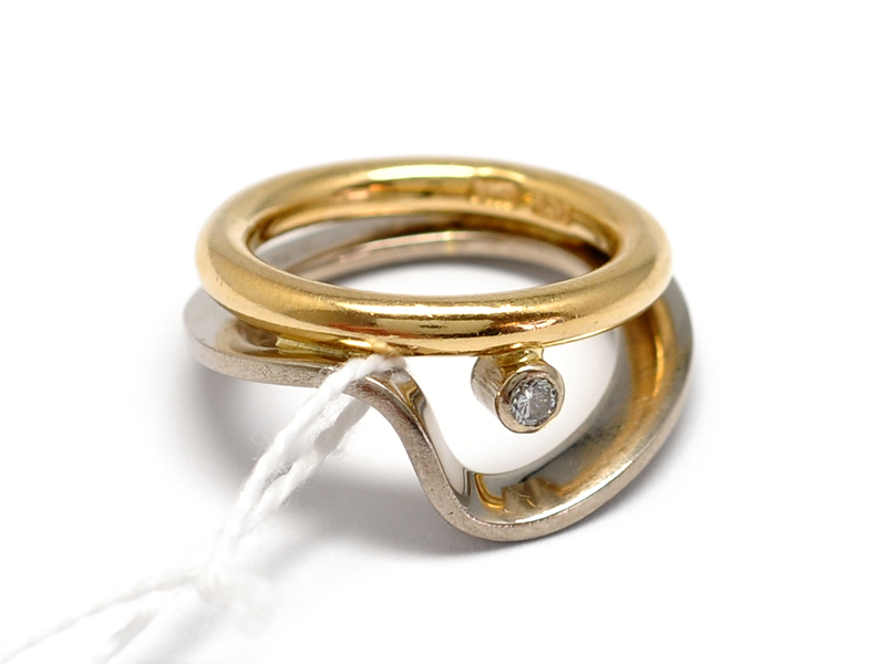 Ring, tvåfärgad med diamant 1xca.0,04ct, 18K Ø17 11,9g