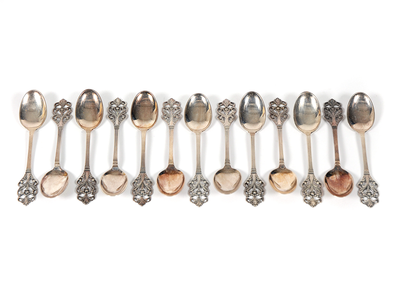 13 KAFFESKEDAR, silver, längd 10 cm, vikt 96 g, TH Martinsen, Norge, etui för 6 stycken.
