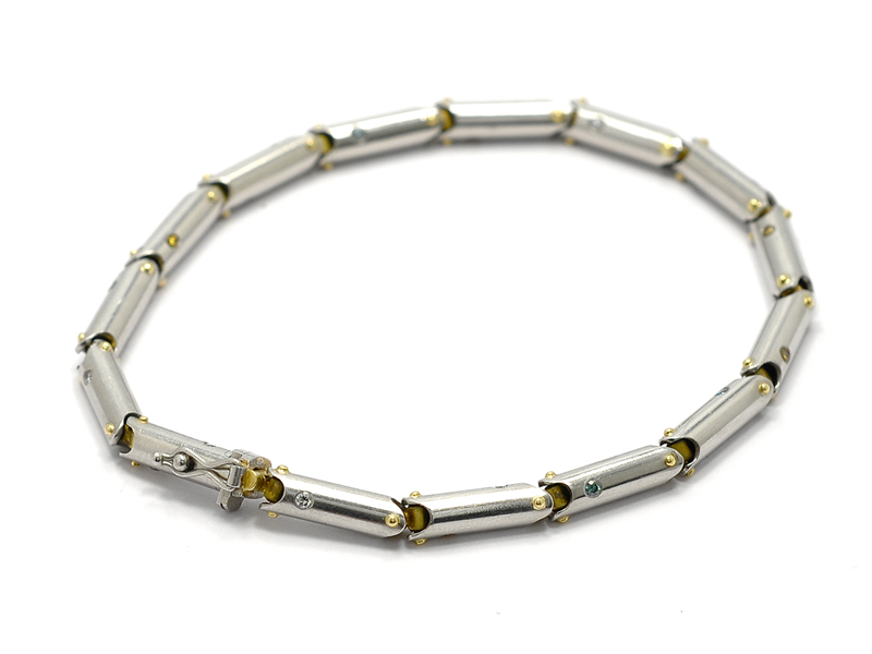 ARMBAND, platina/18K guld, 30 briljanter ca 0,45 ctv, blå, gula och vita, längd 20 cm, vikt 23,6 g.