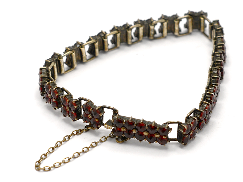 ARMBAND, förgyllt silver, granater, längd 17 cm, säkerhetskedja.