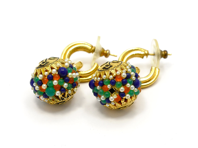 ÖRHÄNGEN, BIJOUX BURMA gulmetall/imitations pärlor/färgade stenar etui