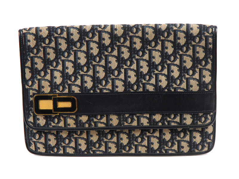 VÄSKA, CHRISTIAN DIOR vintage CD blå/beige tyg 28x18 cm (någon fläck)