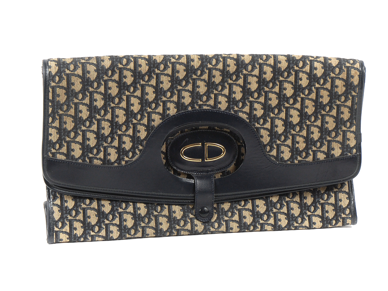 VÄSKA, CHRISTIAN DIOR vintage 1970-tal vikbar helmått 39x36 cm kuvert modell mått 39x22 blå/beige tyg/läder