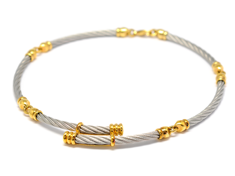 COLLIER, PHILIPPE CHARROL stål/guld doublè detalje längd 42 cm etui och cert