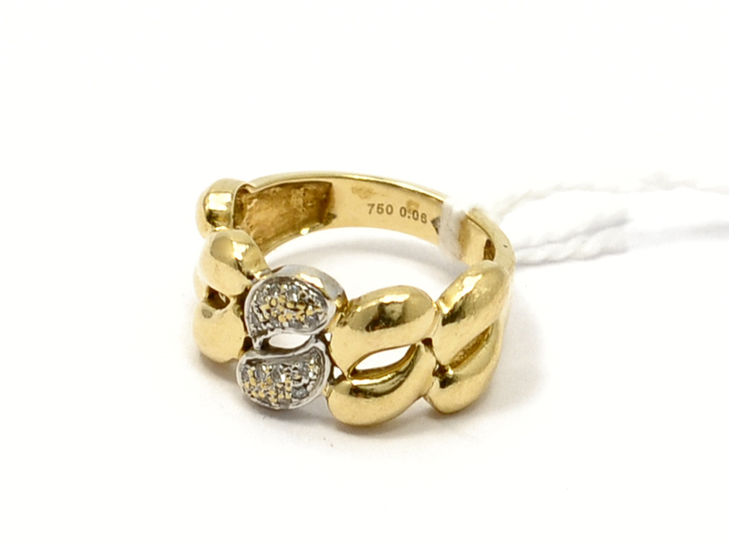 Ring, 18K Ø15 med små diamanter, 4,7g