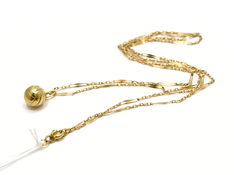 Halskedja, 60,5cm med hänge fotboll, 14K 3,2g