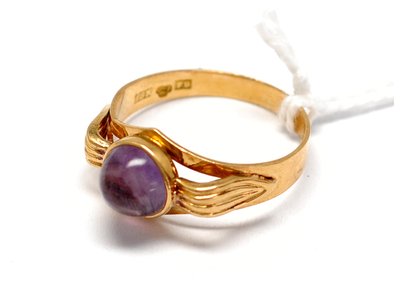 Ring, med lila sten ngt skev Ø16¼ 18K 2,1g