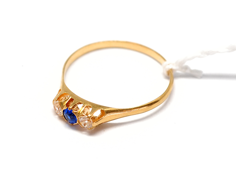 Ring, med blå och vita stenar Ø19¾ 18K 2g