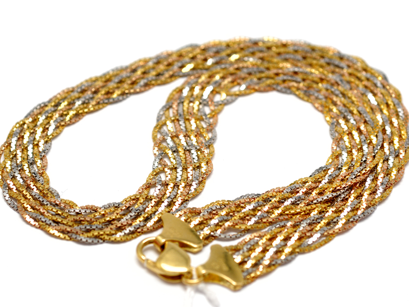 Halskedja, flätad flerfärgad 45,5cm 18K 40,4g