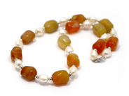 COLLIER, odlade sötvattenspärlor, karneoler, längd 44 cm, silverlås och silverkulor.
