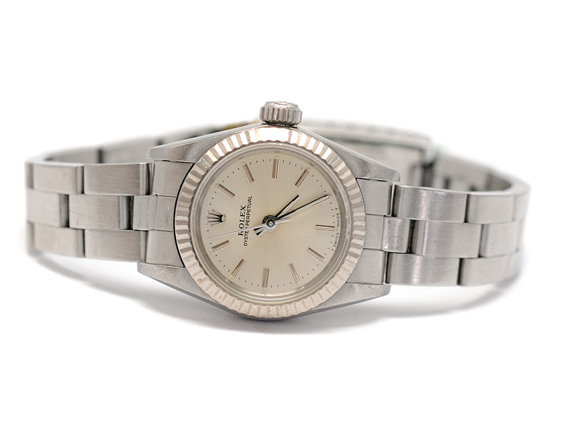 ROLEX, Oyster Perpetual, Ref nr. 67194, Serie nr. R644838, Cal 2130, Verk nr. 1078488, Boett nr. 67000, damur, 26 mm, stål, automatisk, safirglas, defekt, Oysterlänk, viklås, Ref nr. 78340-M9/566 B, cert, mars 1990, box, ytterkartong.