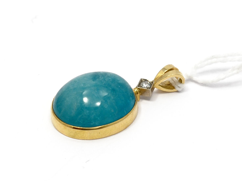 Hänge, med grön sten och diamant ca0,04ct 18K bruttovikt 5,8g