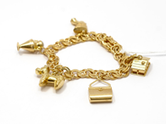Armband, Bismarck 18K 19cm med 5st Berlocker varav en med sten, skadad, 18K bruttovikt 32,3g