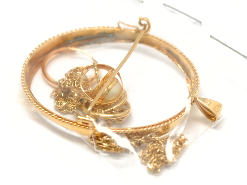 Parti guld, skadat med sten 18K bruttovikt 9,3g