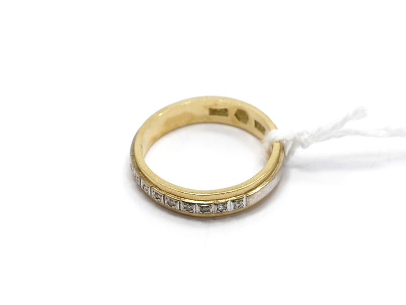 Ring, tvåfärgad med diamanter 7 x ca 0,005ct 18K Ø16 3,6g