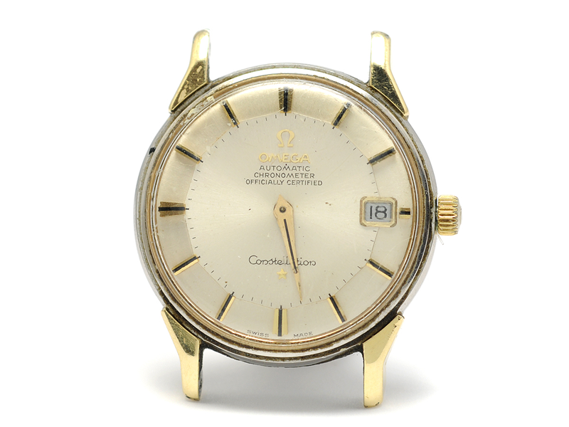 OMEGA, Constellation, Calendar, Chronometer, s.k. "Pie-pan", Cal 564, Serie nr. 25320946, Ref nr. CD 168.0005, Boett nr. 168.005, herrur, 34,2 mm, guld på stål, automatisk, plexiglas, datum, skadad urtavla, sekundvisare saknas, glasring saknas, gravyr, ca 1967.