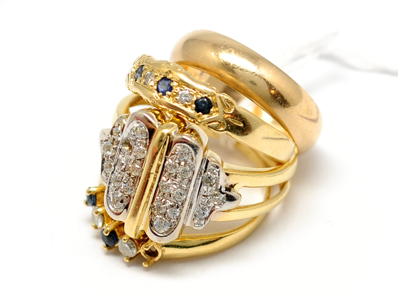 Ringar, 4st defekt med stenar och små diamanter 18K 17,4g