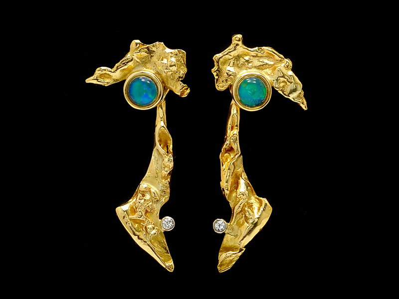ÖRHÄNGEN, 18K guld/vitguld, 2 briljanter ca 0,04 ctv, ca W/VS, 2 opaltripletter, stift, vikt 8,1 g, Lindahl och Färnet, Uppsala, kan bäras i kombination eller som hänge, orginaletui.