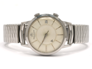 JAEGER-LE COULTRE, Memovox, Cal K 825, Serie nr. 1581627, Ref nr. E855, Boett nr. 900912, herrur, 37 mm, stål, hammarautomat, plexiglas, datum, alarm, skadad urtavla, larmstift i bakboett lagat, ca 1964, metallänk ej original.