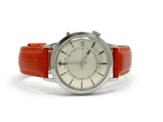 JAEGER-LE COULTRE, Memovox, Cal K825, Serie nr. 1924177, Ref nr. E 855, Boett nr. 1123838, herrur, 37 mm, stål, hammarautomat, plexiglas, datum, renoverad urtavla, skadad urtavla, alarm, krona saknas, läderband, ca 1968.