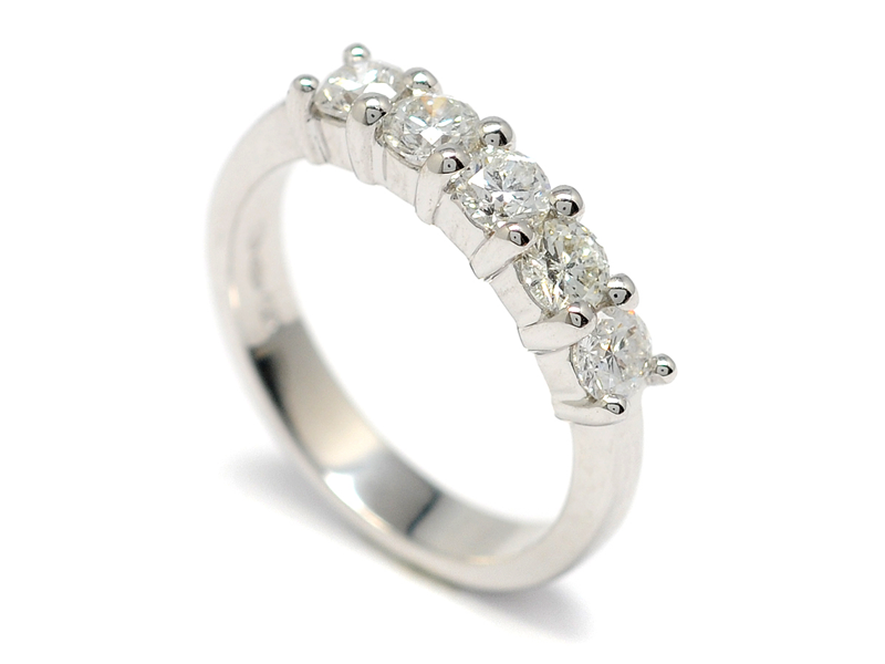 ALLIANSRING, 18K vitguld, 5 briljanter ca 1,00 ctv ca TW-W/SI, stl 17 mm, vikt 4,9 g.