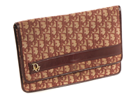 KUVERTVÄSKA, CHRISTIAN DIOR, vinröd, beige tyg, läder, 28X18 cm, låset är trasigt.