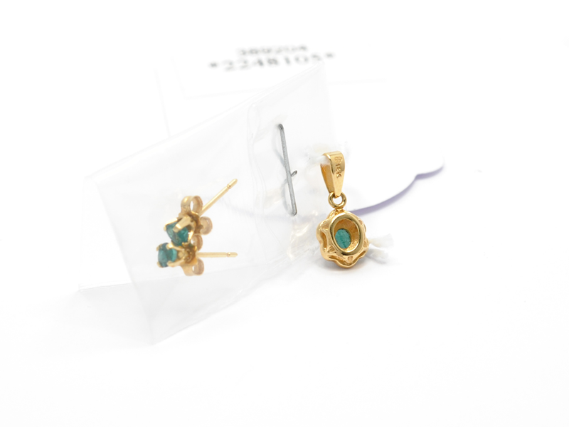 Örhängen, ett par med gröna stenar Berlock med grön sten 18K 1,3g