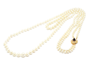 PÄRLCOLLIER, 2 rader odlat docerat guldlås 18K med ametist längder 50 cm och 74 cm