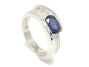 RING, 18K vitguld, blå safir ca 1,50 ct, 30 briljanter ca 0,50 ctv, ca W-TCR/SI, stl 16,75 mm, vikt 7,4 g.