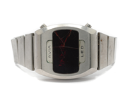 PULSAR, TimeComputer, LED, Cal 3013, Boett nr. 293198, herrur, 41,5 x 45, digital, stål, quartz, mineralglas, defekt, gravyr, integrerad originallänk, viklås, ca 1972.