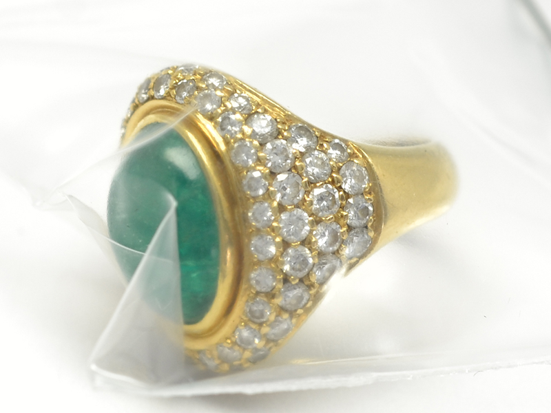 Ring, 18K med grön sten o diamanter ca66xca0,02-0,03ct skadad 9,8g