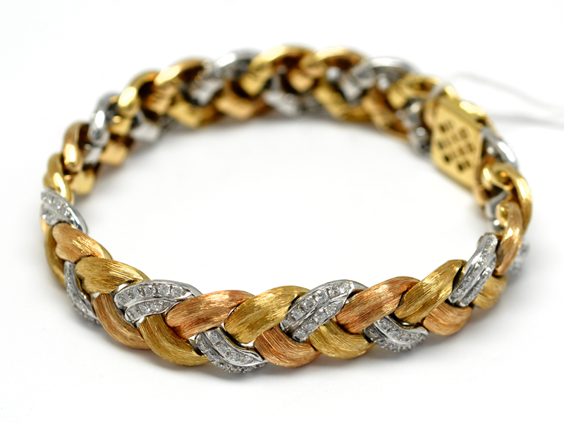 Armband, 18K tvåfärgad flätad med diamanter 160xca0,01-0,02ct 17cm 49,8g