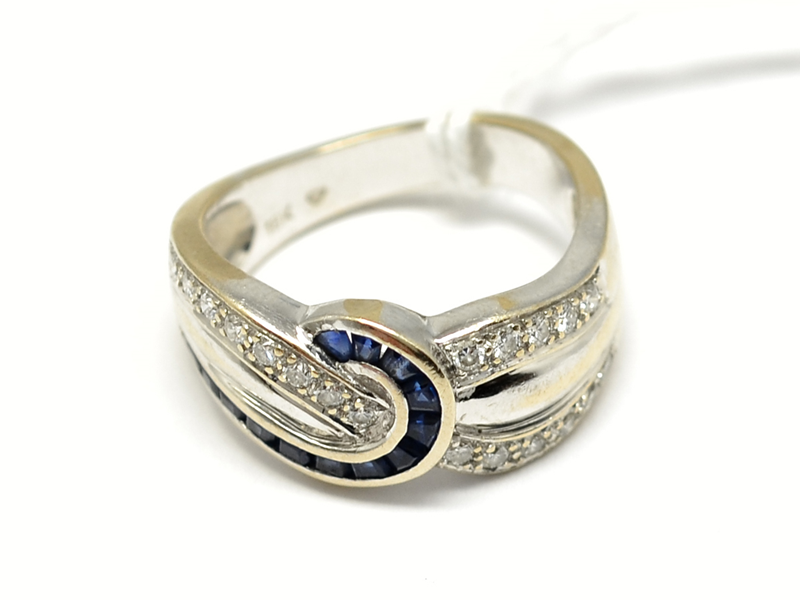 Ring, med blå stenar och små diamanter 18K vitguld Ø17 6,3g