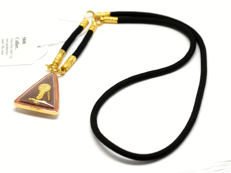 Collier, Halscollier i tyg med gulddetaljer i minst 18K 64cm bruttovikt ca17,6g